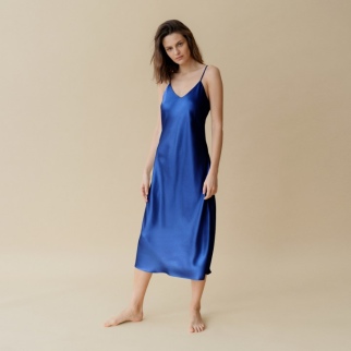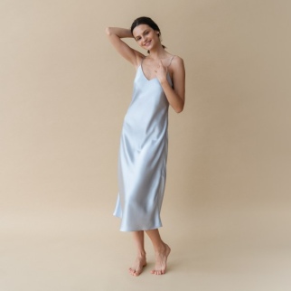 Шелковая Идеальная короткая сорочка серебристо-голубой